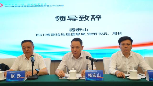四川省测绘地理信息局党组书记、局长杨宏山致欢迎辞,他首先对与会嘉宾表示感谢和欢迎,向与会代表介绍了四川省在北斗导航、遥感监测、实景三维建设等方面的成果,同时指出西南地区地理位置独特,不仅是我国重要的战略后方、生态屏障、开放门户,更是经济发展与文化传承的重要区域。西南地区复杂的地形地貌、丰富的自然资源、独特的边疆区位,为测绘技术创新提供了“天然实验室”,更是“数字中国”建设必不可少的重要一环,并呼吁行业加快智能化测绘体系建设,深化技术创新与区域合作,为智慧城市、应急管理等领域提供更精准的服务,同时希望全体与会代表在会议中畅所欲言、深入交流,既收获前沿知识,也缔结深厚情谊。并以此次会议为起点,更加紧密地团结在以习近平同志为核心的党中央周围,携手绘就测绘地理信息事业的壮丽画卷,为数字中国建设贡献西南智慧。