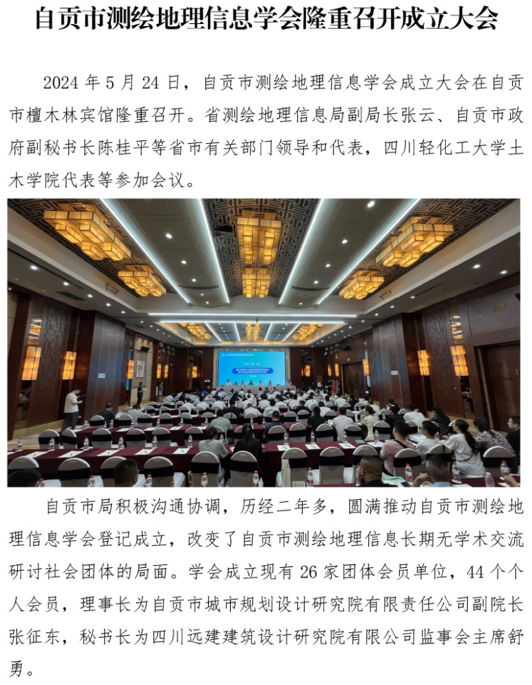 自贡市测绘地理信息学会第一次会员大会在我市隆重召开